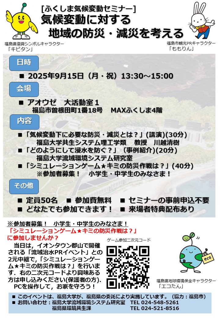 今回、「ふくしま気候変動セミナー」として、気候変動に対する防災・減災をテーマに、専門家がわかりやすくお話しします。