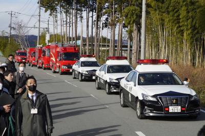 - The photograph shows the local fire prevention and crime prevention mobilisation ceremony of the prefectural police and fire department and the removal of road barricades. (Photo provided: Tomioka Town) 」