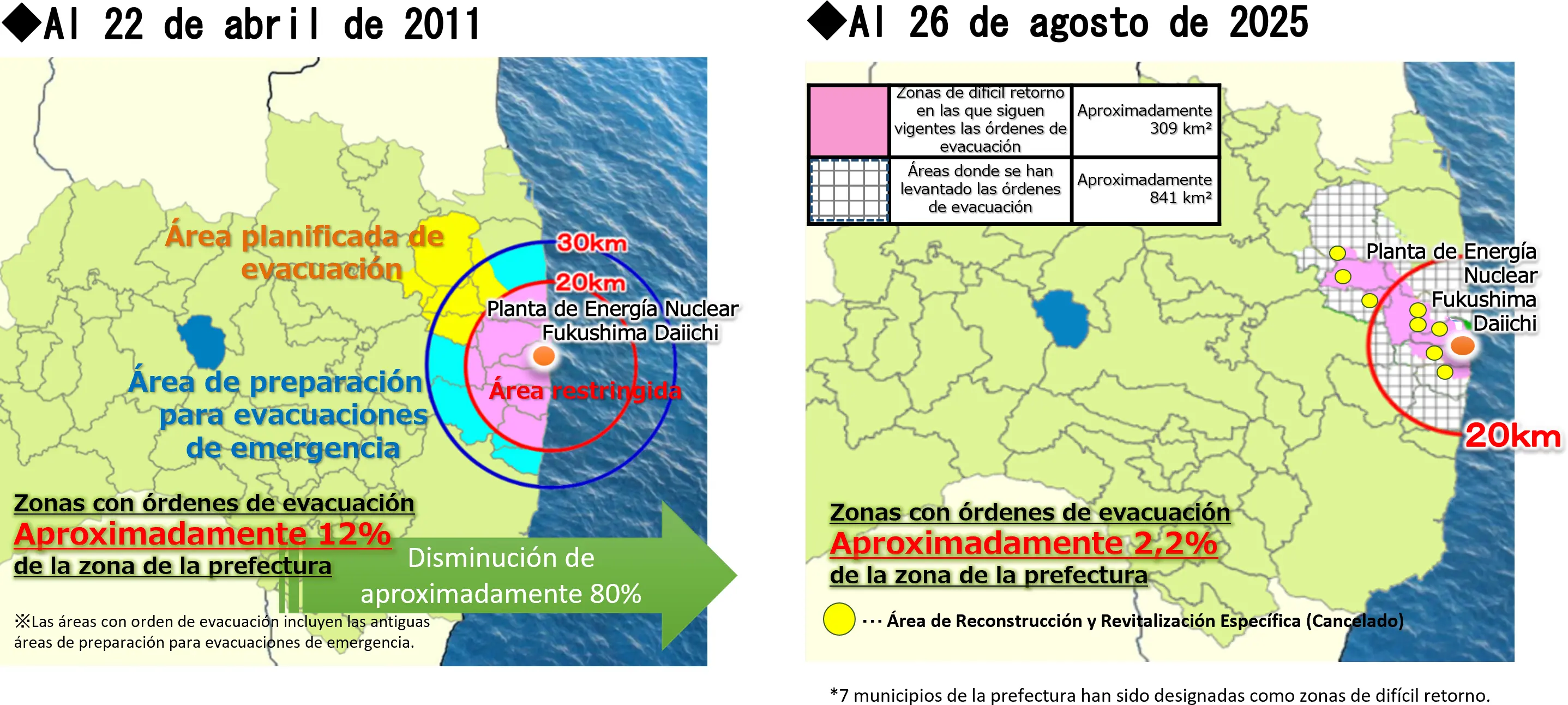 Cambios en las áreas con órdenes de evacuación y estado de reconstrucción