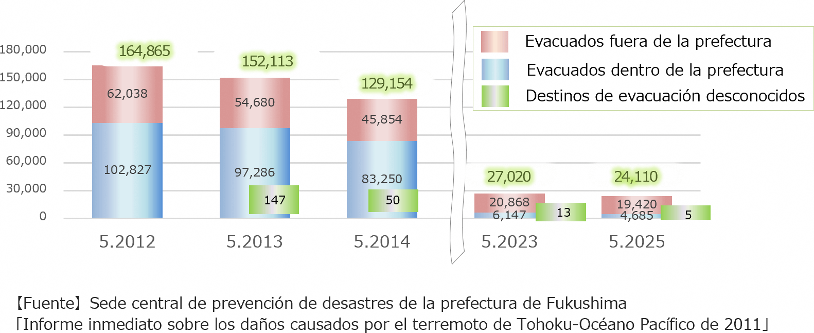 ※Muertes relacionadas con el terremoto: Estas muertes no fueron causadas directamente por el terremoto, sino por causas indirectas como por ejemplo, el deterioro de la condición física durante el período de evacuación y el exceso de trabajo.