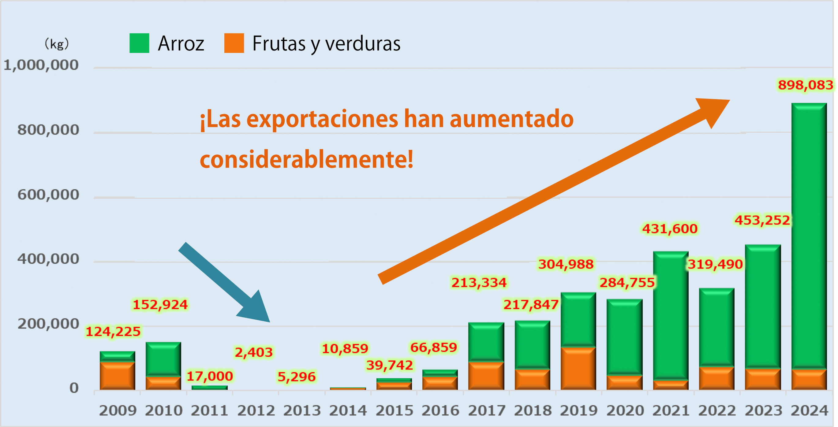 En comparación con los niveles previos al desastre, las exportaciones han experimentado un aumento significativo, y el año fiscal 2024 registró el volumen de exportación más alto de la historia