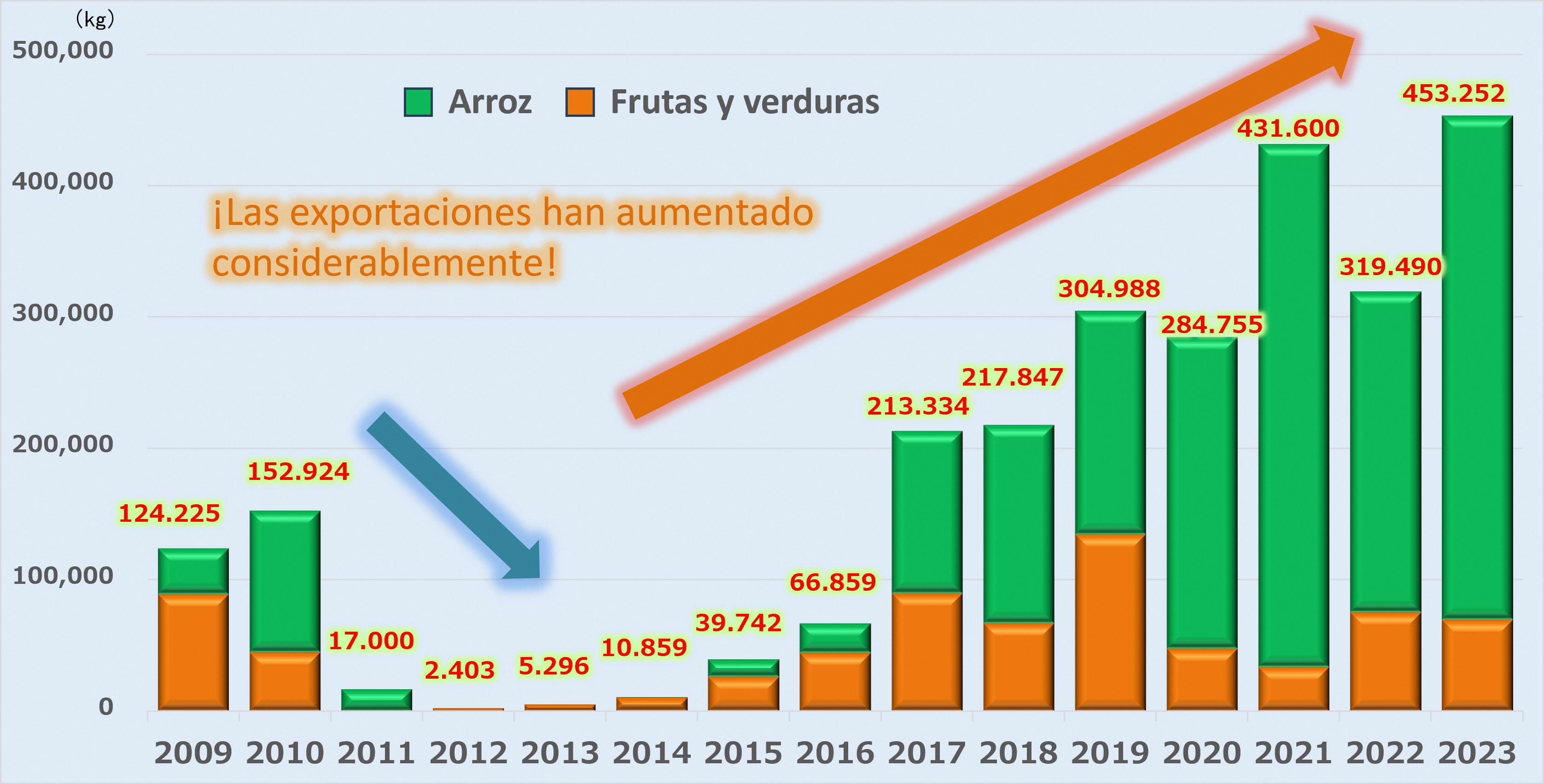 En comparación con los niveles previos al desastre, las exportaciones han experimentado un aumento significativo, y el año fiscal 2024 registró el volumen de exportación más alto de la historia