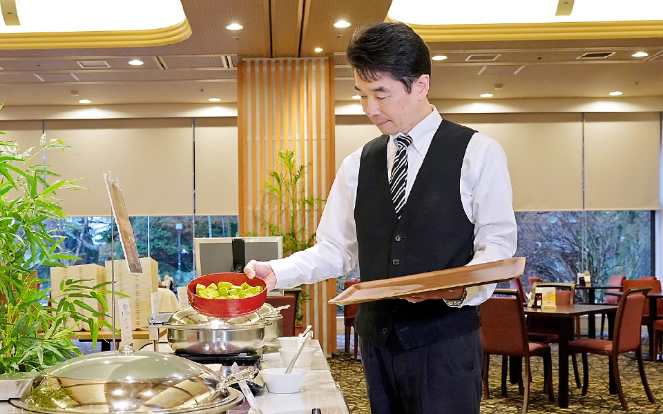 様々ですが、ビュッフェ会場では、バーカウンターでのドリンクサービスなども行っています。また、個室でのお食事は、一品ずつ提供するため、より丁寧で質の高いサービスを心がけています。