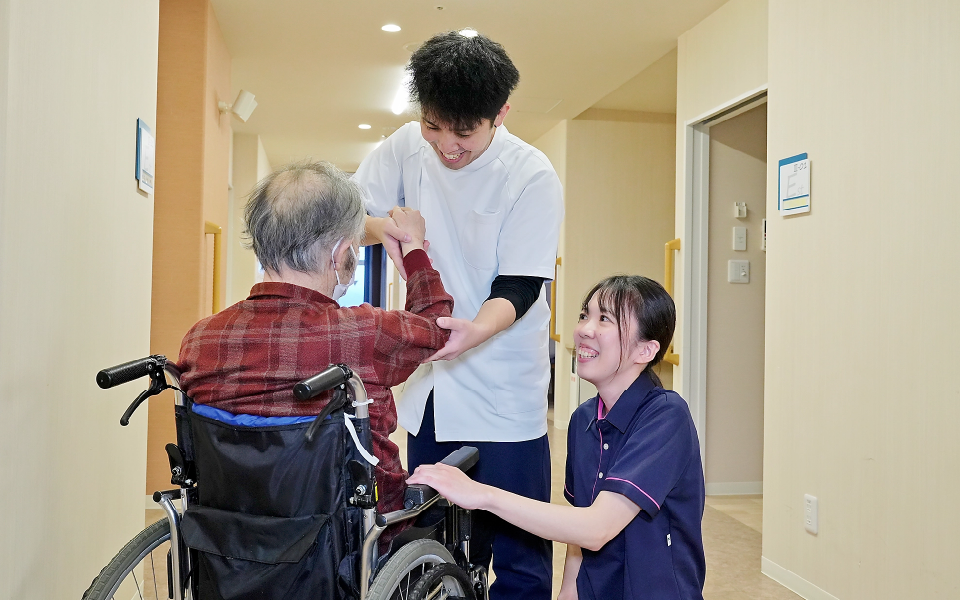 介護職は、利用者の方と接する時間が長く、ありがとうと笑顔を見せていただいた時、この仕事をしていて良かったと思います。自分が笑顔でいれば、利用者の方も笑顔になれると思って頑張っています。